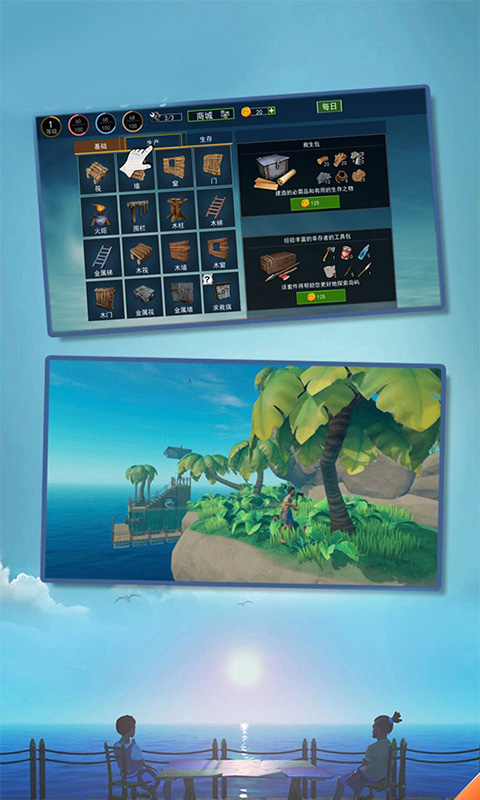 1. 资源优先级管理:初期优先收集木箱(含金属、绳子等高级材料)和木桶(储存淡水),避免过度依赖低效的木板与塑料桶,快速解锁净水器、烤架等关键设施。