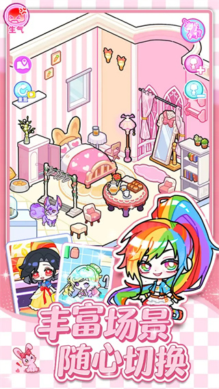 3. 故事演绎与创意剧场:玩家可设定故事主题(如日常、冒险、奇幻),为角色编写台词、设计动作,并通过切换场景推动剧情发展。系统无固定剧本限制,支持预留情节转折空间,例如根据角色特性设计互动环节,增强剧情趣味性与连贯性。