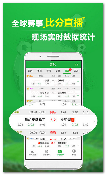 球探数据大师下载(竞彩足球比分直播软件)安卓最新版是一款专门为广大足球爱好者设计的体育竞技类手机软件。该软件致力于提供及时、准确的足球比赛实时比分、赛事资讯以及专业的数据分析功能,帮助用户更好地了解赛事动态,做出明智的竞猜选择。