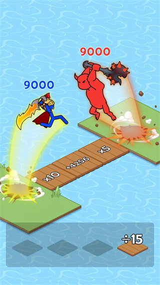 1. 核心循环:观察场景→规划木板路径→触碰木板提升数值→击败敌人→获取新木板→挑战更高难度关卡。例如,在关卡初期,优先触碰“+3”木板快速提升数值,再利用“×2”木板实现指数增长,形成“数值碾压”优势。