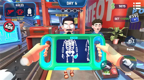 1. 核心任务:玩家需在安检口对排队旅客逐一检查,通过X光机扫描行李、金属探测器检查随身物品,并观察乘客表情与行为,判断是否携带违禁品或存在危险意图。例如,若发现旅客行李中藏有刀具,需立即收缴并拘留该人员;若误放恐怖分子登机,则直接导致游戏失败。