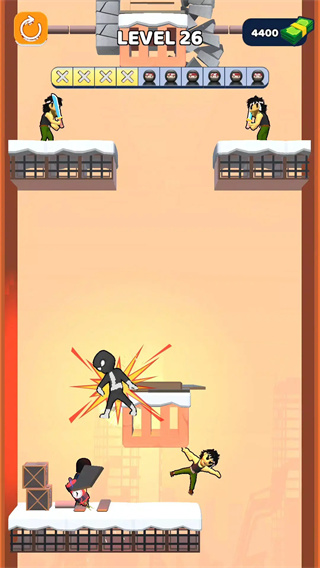 2. 关卡设计:30个主线关卡涵盖城市街区、废弃工厂、地下档案室等多样化场景,每个关卡设有3种难度模式。例如,“神社回廊”关卡需利用竹林遮挡视线,从背后暗杀巡逻的武士。
