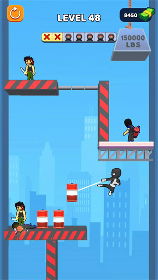 2. 精准暗杀:靠近敌人背后时点击攻击键完成背刺,部分关卡需连续暗杀多名敌人,需规划行动路线避免被发现。