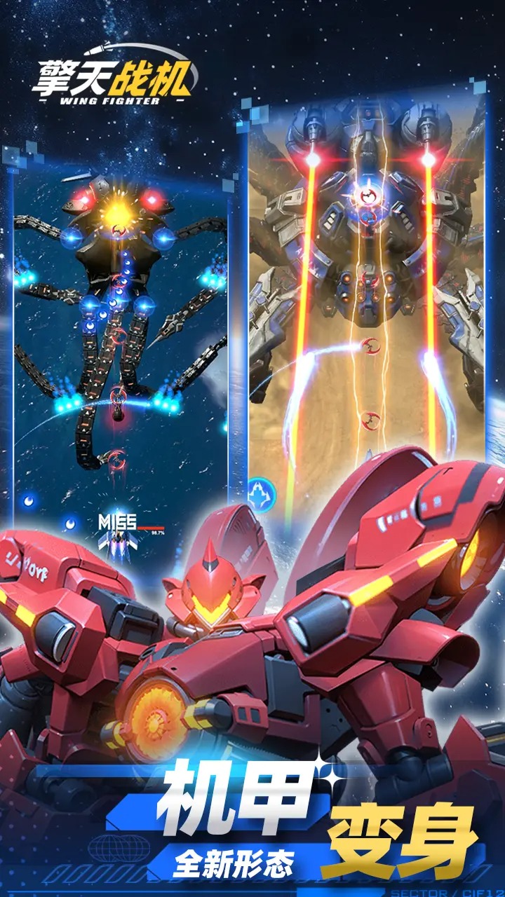3. 机甲变身系统:战机能量槽蓄满后可触发泰坦机甲形态,获得专属技能(如“全屏核爆”“重力漩涡”),并大幅提升生存能力,适合应对高难度BOSS战。