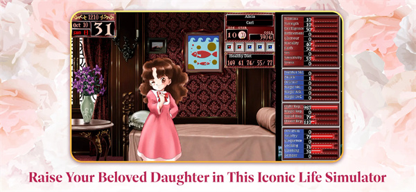 1. 硬核数值系统:女儿拥有体力、腕力、魅力、气质、道德、信仰、智力、感受、罪孽九大基础属性,以及战士评价、魔法评价等12项技能数值,属性上限分别为999与100,数值变化直接影响职业结局与社交关系。