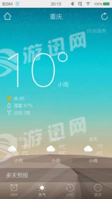 【天气提示】响铃界面提示当前天气情况,让您在睡眼朦胧之际准确判断一日的着装,从此您再也不用担心因贪睡而迟到,因忘带伞而淋雨,因大风降温忘带衣服而感冒了