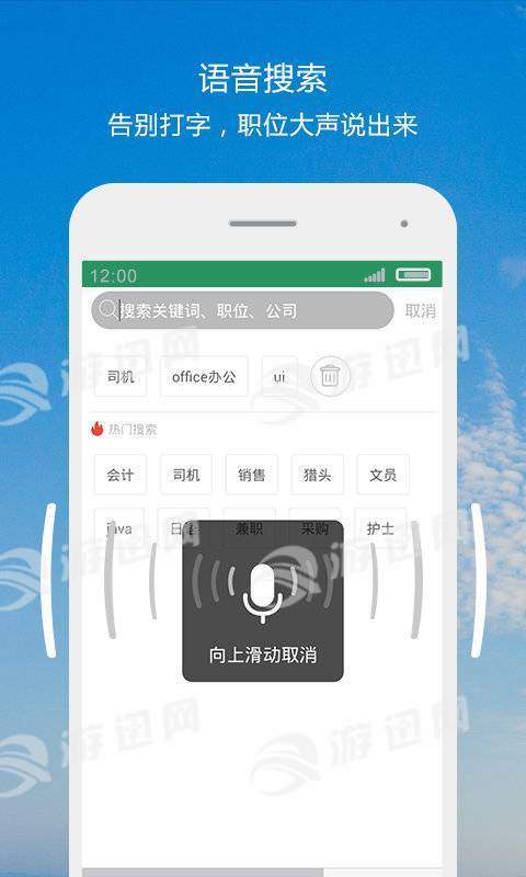3.搜索职位增加语音搜索功能,告别输入框,职位大声说出来;