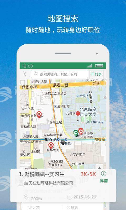 职位信息易浏览,突出关键可深挖,地图呈现全了解。