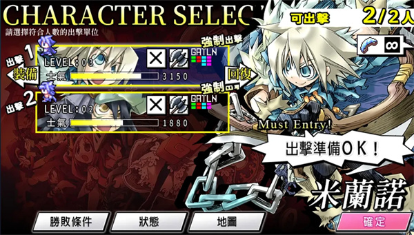 2. 硬核SRPG体验:非HARD模式下不出击的角色可恢复少许士气,HARD模式则禁止士气恢复,需依赖道具维持战斗力。道具获取有限,需策略性分配使用,增加游戏挑战性。
