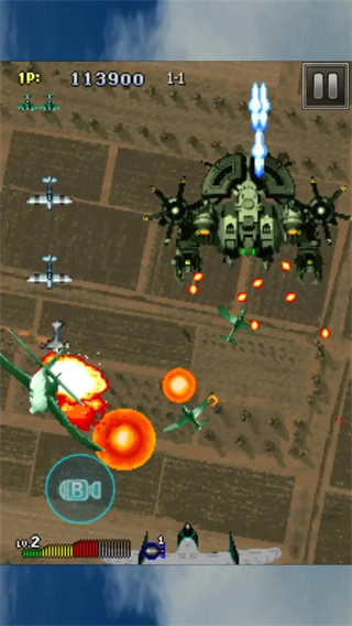 2. 深度策略系统:除传统火力升级外,新增副武器切换机制(如P-38可切换环形炮弹与集中光束),玩家需根据关卡特性动态调整战术。
