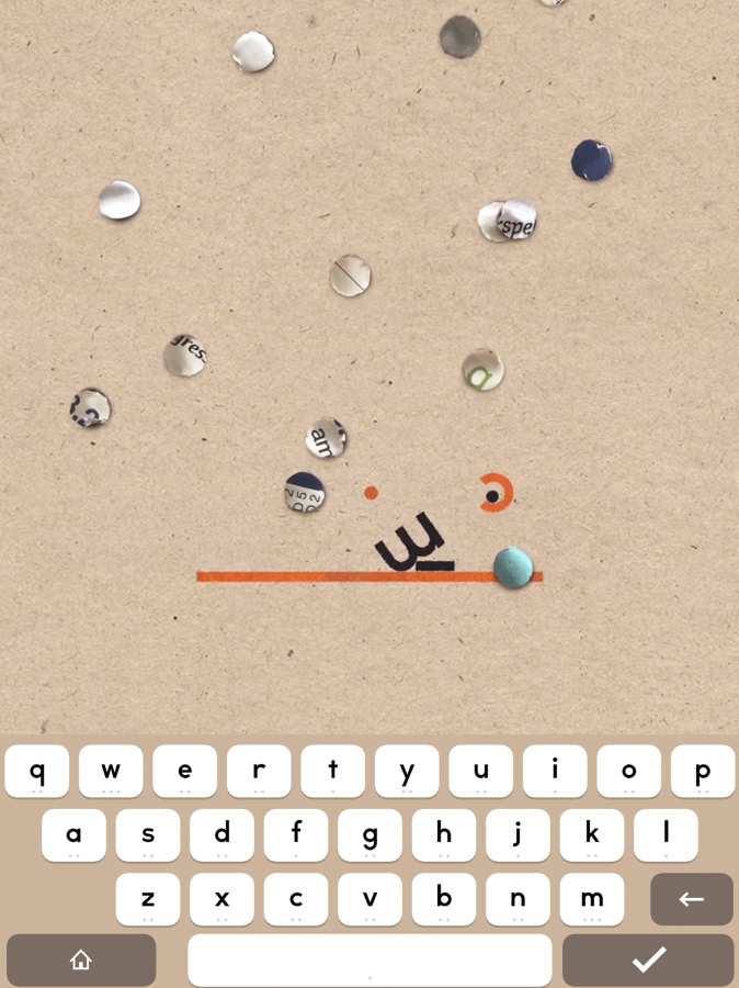 玩家须要在平台上划线,让下坠后的字母摆出特定的姿势才能过关,比如让m挂在柱子上,让i的圆点进入洞中。后面有些关卡要求同时吃掉多个黑点,或者把字母吹起来,滚到缝隙里,要求越来越变态,求虐的玩家可以来试试。