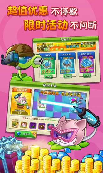 zombievsplant2(通常被称为植物大战僵尸2)是一款极富策略性和趣味性的塔防类安卓游戏。作为经典续作,它在沿袭了前作植物防御僵尸的核心玩法的基础上,融入了更多创新元素。游戏画面唯美可爱,音效协调,为玩家带来了既紧张又充满乐趣的游戏体验。玩家需要巧妙运