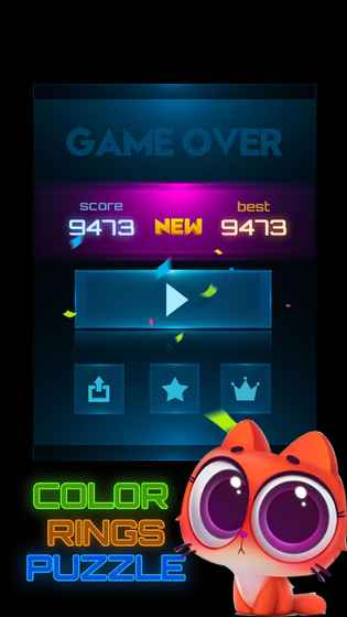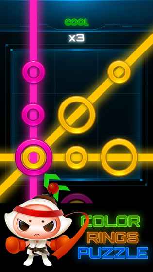 匹配行中正确的颜色环,非常容易上瘾和时间传递游戏。