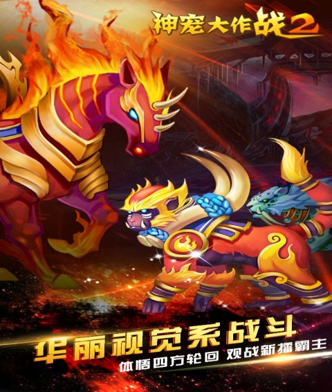 神宠大作战2是首款传说神兽养成进化游戏,浴火重生的凤凰、傲视群兽的白虎、梦幻中的独角兽、妩媚众生的九尾狐等上千种神兽齐聚神宠大陆,独特的培育孵化系统,首创神兽融合式进化玩法。