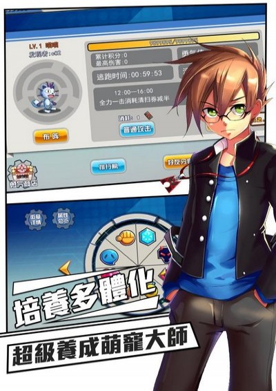多种属性相克玩法,超过百个原著宝贝不断扩展,多种原著技能,趣味宝贝进化养成!宝贝升级还会学习新技能,更有野外探险捕捉希有宠物、狩猎场狩猎希有神兽!