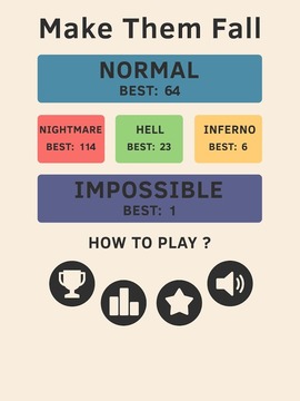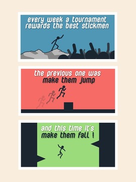 《下落吧火柴人 Make Them Fall》是一款非常考验玩家反应的休闲游戏,玩法简单,点击屏幕即可让火柴小人跳跃。事实上可没这么简单,玩家需要控制至少两个火柴人躲避不同的障碍,下落的速度也会发生变化。这货活脱脱就是一个都不能死的竖版和加起版,游戏中最多可以同时控制6个火柴人下落,想看看朋友们手舞足蹈的样子?那就快下载吧。