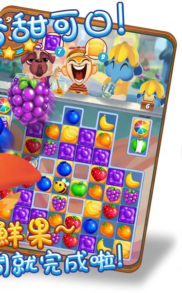 在果汁托邦和奇异果与芒果同乐,在这个奇幻的国度为口渴的顾客送上果汁吧!《碎碎鲜果》有独特的角色阵容、丰富细致的游戏世界,还有让人欲罢不能的三消游戏,一定能让你尽情畅玩!