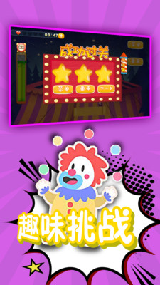 这款游戏是欧美风格的游戏,游戏是发生在马戏团中哦,在马戏大爆炸游戏中有非常多的关卡,玩家可以直接去选择冒险哦,而且还有非常惊险刺激的玩法,感兴趣的快来下载吧!