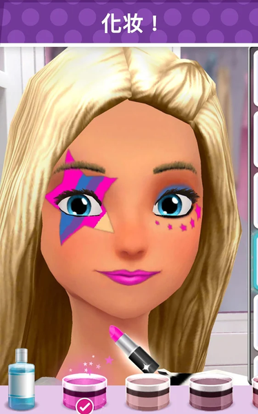 选择一个角色,打造时尚外观!给Barbie和朋友们化妆,使用好玩的面部模板来渲染出漂亮的设计。选择不同的风格和颜色,在发型上发挥创造力!从上百种的上衣、下衣、裙子和鞋中挑选,创造出终极外表,甚至还可以创造出职业套装,让角色们在拥有完美工作的同时,外表也同样光彩照人!