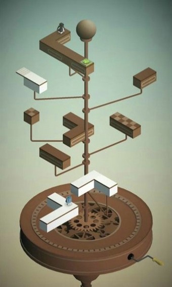 《梦境机器》的主角是一枚可怜的发条机器人,他因为工作时短路而被扔进了废品堆,清醒过来的机器人要凭借自己的智慧重重机关,逃出阴冷黑暗的工厂。《梦境机器》的黑暗蒸汽朋克风格与《纪念碑谷》的暖色调形成鲜明对比,游戏时发条机器人会一刻不停的向前移动,玩家要操控各种把手、转盘为他铺平前进道路。同样活用了“不可能空间”的《梦境机器》节奏更快,寓意更深刻。