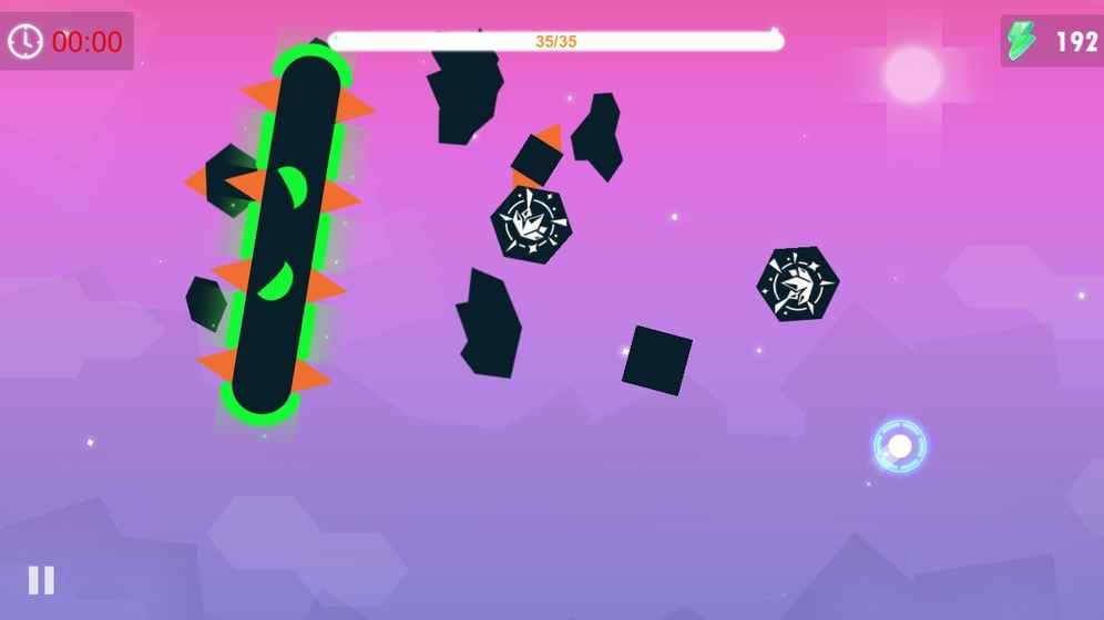 你可以操纵你的小球在空中自由的撞击和弹射来打击邪恶的怪物,强大的空间操纵能力可以让你每一次的滞空都可以让空间里的其他障碍物和怪物变的缓慢。