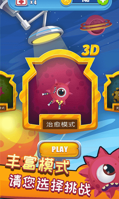 各种水果病症需要你来耐心治愈,终极挑战就在这里!点击针筒,扎中水果萌细菌露出的平坦的弱点区域,犀利的消灭水果萌细菌!小心,不要扎到水果萌细菌防御区!每一种水果萌细菌都需要一定数量的药剂才能完全被治愈。快用你手上的针筒击中水果萌细菌,让它们被治愈吧!