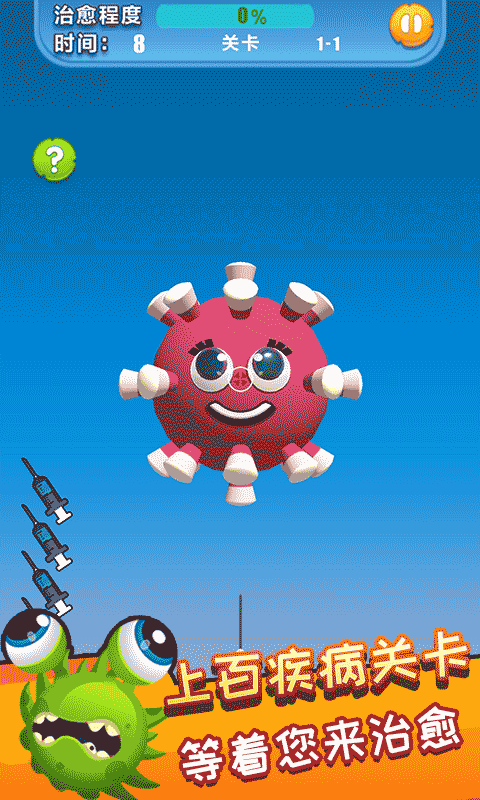 《果子大碰撞》是一款魔性创意的休闲小游戏,玩家需要为游戏中的水果进行治愈杀菌,多种华丽的针管等你来集齐,丰富的模式随心挑战,上百疾病关卡等你来治愈,你还在等什么?快来消灭细菌吧!