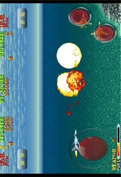 很早以前的横版飞机游戏,每关消灭敌关BOSS后都会有奖励金钱,这些钱可以用来在下面一关购买不同的导弹,不同的导弹也是用来对付不同的BOSS的,有跟踪、对地导弹等,当然最重要的还是可以用来买加长生命的血槽,还有一种就是保护圈了, 游戏中可以捡到3种弹,分别为红色、蓝色、绿色,玩家可以根据不同的喜好来捡拾炮弹。