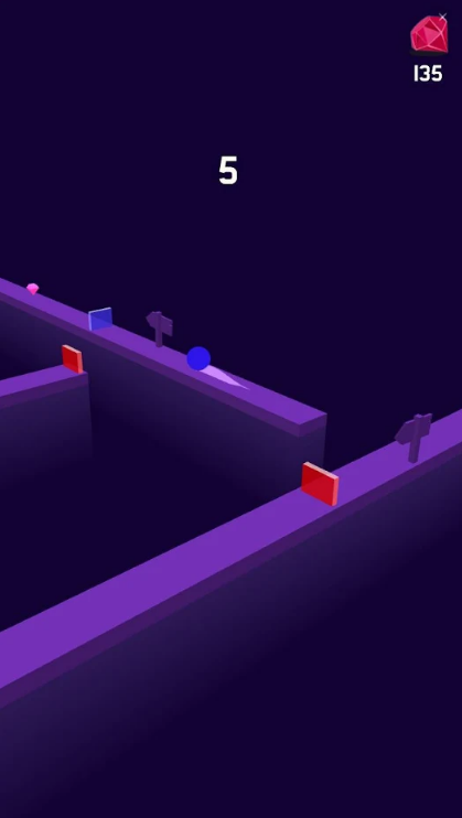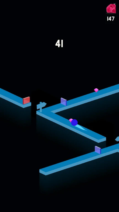 3、超简单的操作模式让每一位玩家都能够轻松上手,轻轻点击屏幕即可控制小球进行转向,点左边左转点右边右转。