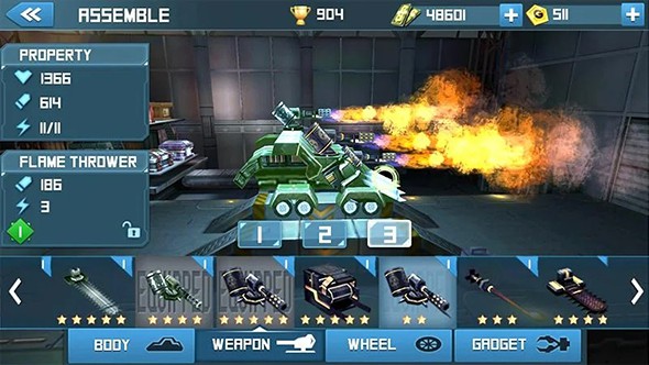 1、数十种武器配件自由组合搭配,打造只属于你的独特战车;