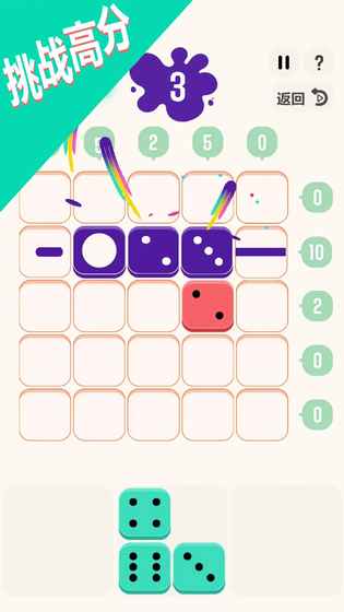将骰子拖拽到棋盘上,在任何一行或者一列中达到“10点”时,你就能够获得分数,玩无尽模式来不断刷新你的高分榜,在多样的动态智力游戏中让您的技能得到提升!