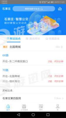 石家庄智慧公交是款简单好用的公交出行软件,实时为用户提供便捷的公交查询服务,附近站点直接查看,支持线路规划,出行更便利,快来使用吧。