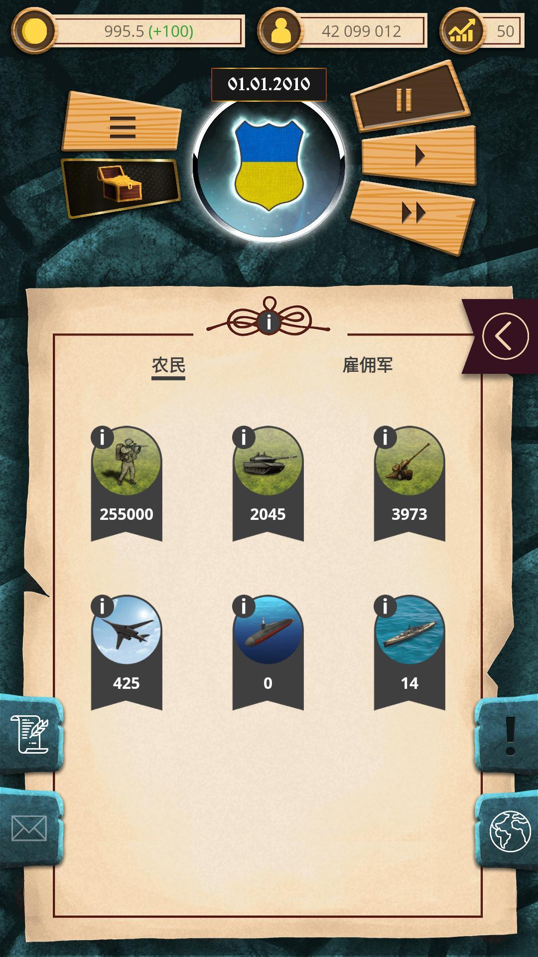 3、积累国家实力,购买高级军事器械,不断强化国家军队,让人不敢侵犯国家领土。
