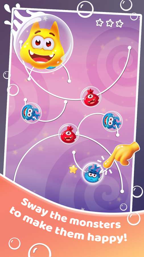 点击气泡怪物让它们摇摆。使用水龙头让气泡怪物不会碰撞。