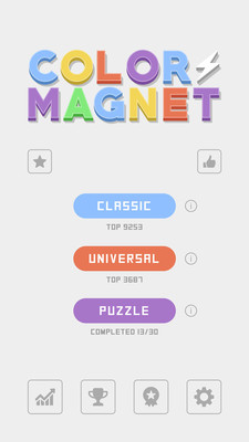 《彩色磁铁》是一款画面简约精致的休闲益智手游,色彩鲜明的画面风格,魔性上瘾的玩法,多个模式可供玩家自由选择,充满挑战性的玩法,挑战你的大脑极限,喜欢的玩家快来下载吧!