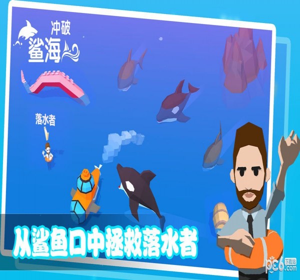 你有没有见过鲨鱼疯狂的样子?如果没有的话,那就快来体验一下这个快艇游戏吧。你作为一个冲浪者,同样你也是一名拯救者,将驾驶一艘快艇去躲避鲨鱼疯狂的攻击,并且需要去营救落水者。你要不断的转向,使得鲨鱼之间互相装晕。那样你才可以顺利营救落水者通关。当然一切都没这么简单。还有更加强大的虎鲸和大王乌贼等待着你。快来挑战吧。看看你能否!