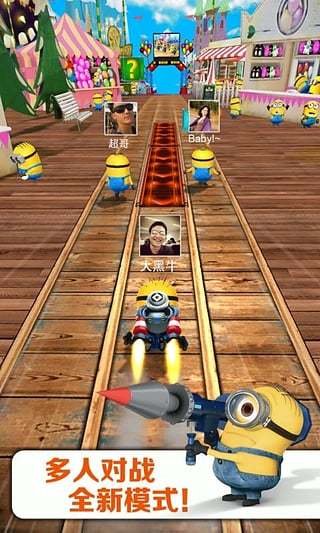 《神偷奶爸小黄人快跑》继“果酱工厂”后再度迎来重量级更新!激烈又欢乐的“多人对战”劲爆来袭!!!你~准备好和好友在“小黄人赛跑”模式中一决高下了吗?