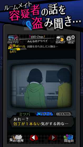 Chap.1:客厅——藤的房间——门口——三叶的房间——客厅(继续监视)【选调查进入BE41】——厕所(时间太长了)