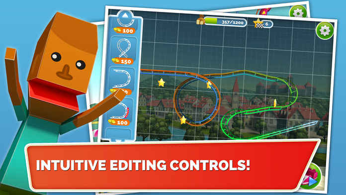 滑动屏幕,在起点和终点之间建造过山车轨道,合理使用道具,节约预算,让游客安全到达终点。