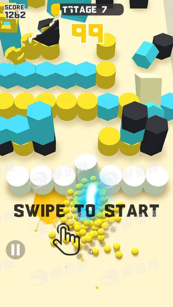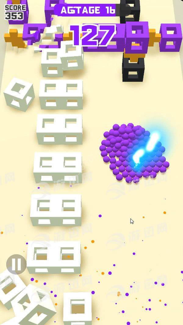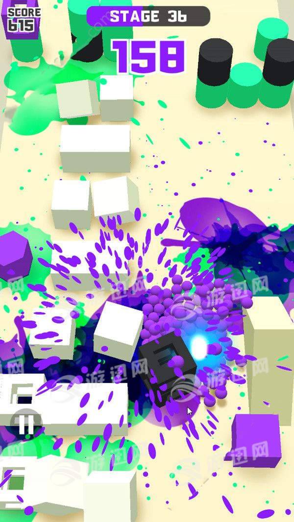 1、玩家在游戏中需要操控你的小球不断的喷射冲刺,冲破各种积木障碍,收集相同颜色的小球