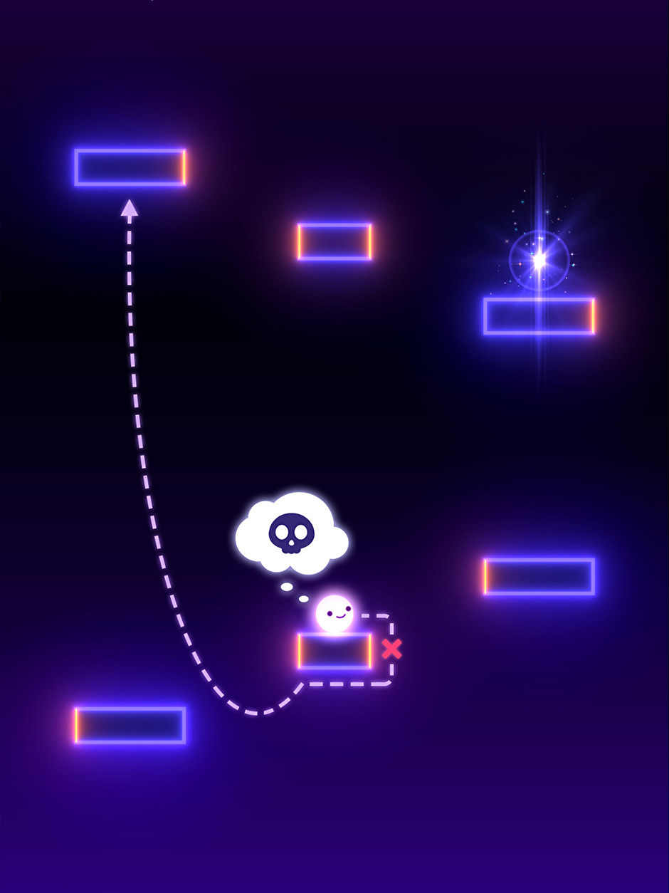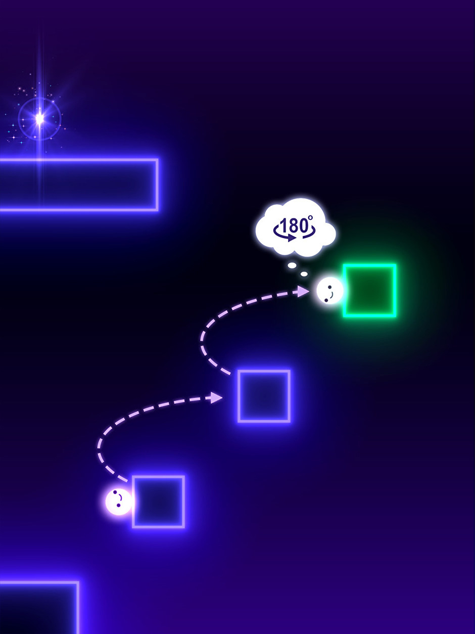 在《Gravidot 重力点点》中,全程只需使用到单指输入,就能完成所有的操作指令,而依照游戏进程,玩家将会面临到「反转」、「陷阱」、「传送门」等特殊主题,都将为游戏带来更多乐趣与挑战。在通关过程中,偶尔会遇到没有把握的状况,此时只要消耗一个「旗帜」,就可以在当前位置设下復活点,一旦不小心失误了,即可从设置好的復活点重生,减少重新尝试的代价,让玩家能更专注在解题上。