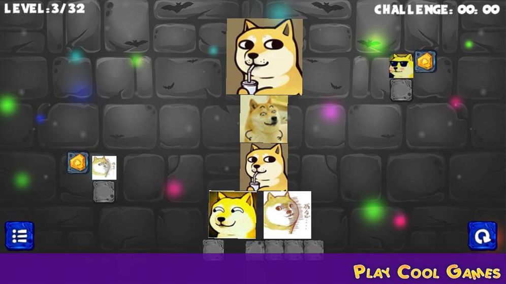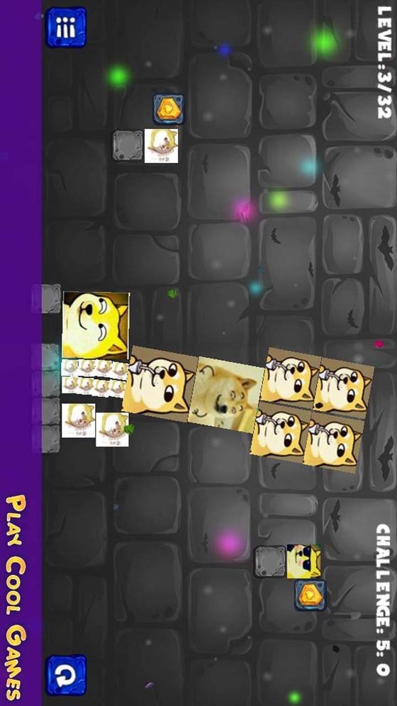 点击有神烦狗图案的方块。会将方块击碎,所有的方块落下就能胜利过关。