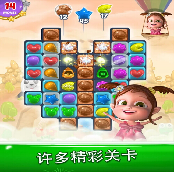 《气球天堂 Balloon Paradise》是一款经典三消游戏。贝拉在一次神奇的冒险中来到了一个未知的世界,这座城市完全由气球构成,隐藏在天空的云朵之中,而一股大风把所有的颜色都弄乱了,我们需要和贝拉一起把秩序恢复。这是一款精彩的云上消除游戏,你的任务是交换和搭配这些闪亮的气球,并使用神奇的道具拯救天空之城。准备好消气球了吗?快快加入我们!