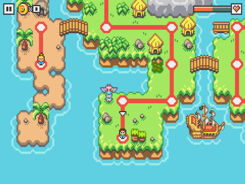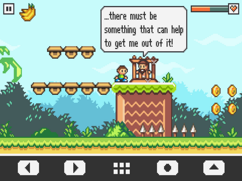 游戏就从本杰明一行人到达岛上之后开始。游戏采用了像素风格的画面设计,看来许多的休闲游戏到现在还是非常热衷于此类画风的,加上游戏采用了横版闯关解谜类的玩法,体验起来还颇有一番复古的感觉。而游戏的音乐也同样的采用了复古的电子乐的设计,声音与画面配合还是非常得当的。
