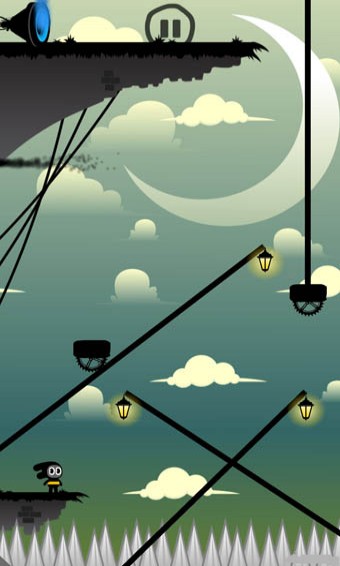 《 The Witching Hour》是一款较为休闲轻度,却有一定的难度的版闯关手游。游戏的美术风格与《迷失之地》相似,以黑色为主体色,背景色用较明亮的色彩,两种色彩形成了强烈的对比。既有被暗黑力量统治的感觉,也不失游戏本身休闲为主的本意。玩家操控的是一个看起来比较弱小的小生物,在这危机四伏的处境,前往安全之地。