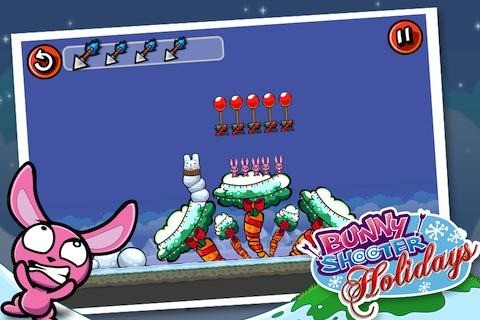 《兔子射手圣诞节版Bunny Shooter Xmas》是一款休闲射击类游戏,游戏中的小兔子把你辛苦种植的萝卜给偷了,你采取了报复行动,拿起你的弓箭向那些小兔子射击!每一个关卡需要做的就是把小兔子准确地击中即可进入下一关卡!游戏有点类似于愤怒小鸟,但风格和玩法都有一些差别,总体算是一款不错的射击类游戏。游戏玩法也很简单,把手指放置弓箭后,向后滑动拉弓,放开手指即可发射出弓箭。