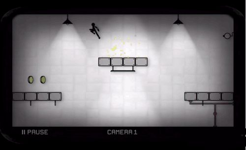 游戏画面采用黑白色调,人物模型也是简单的火柴人。游戏中,玩家需要控制小人通过跳跃、奔跑来越过或躲避各种机关和陷阱,并收集金币。当前关卡中的全部金币全都被收集后即可通关。