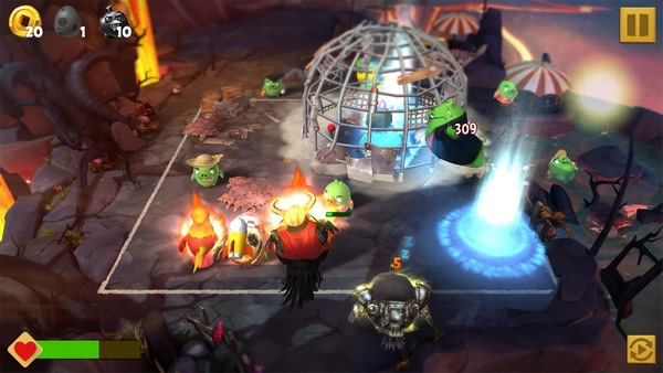从玩法上来看本作的设定和《怪物弹珠》相似,我们的目标还是那些绿皮猪,玩家则是需要讲小鸟们弹射出去击倒它们,碰到场地边缘会反弹改变行进轨迹,从各个角度来看相似度都比较高,不过本作在美术上有很高的加成。