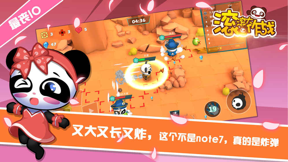 《滚滚大作战》是一款全新的炸弹主题的休闲对战手游,独创的玩法,独特的模式,可爱的熊猫角色,超大型的多人同屏竞技,那叫一个刺激,英雄多多,还有独特技能,好玩到不行,赶紧下载体验一番吧!