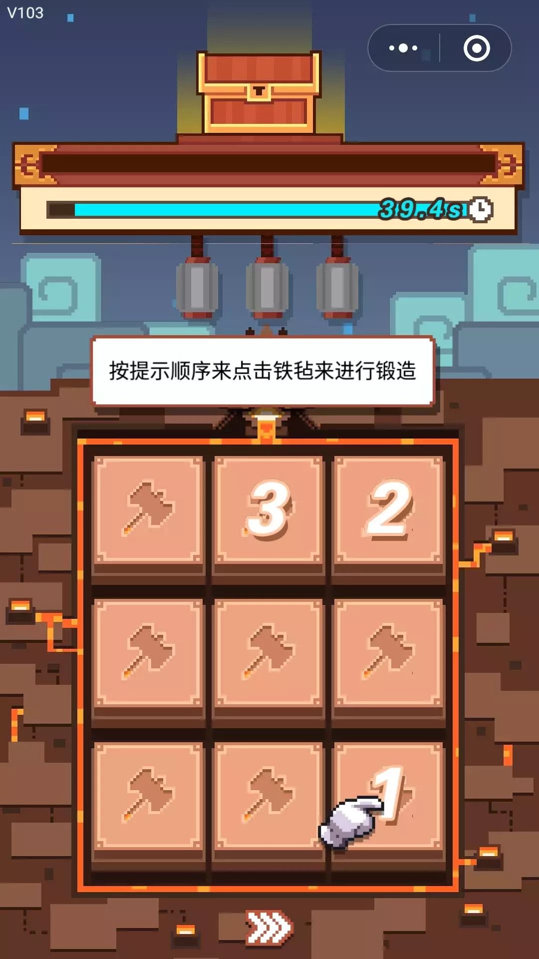 2、考验记忆和手速,玩家需要按照正确的锻造技巧敲打武器。